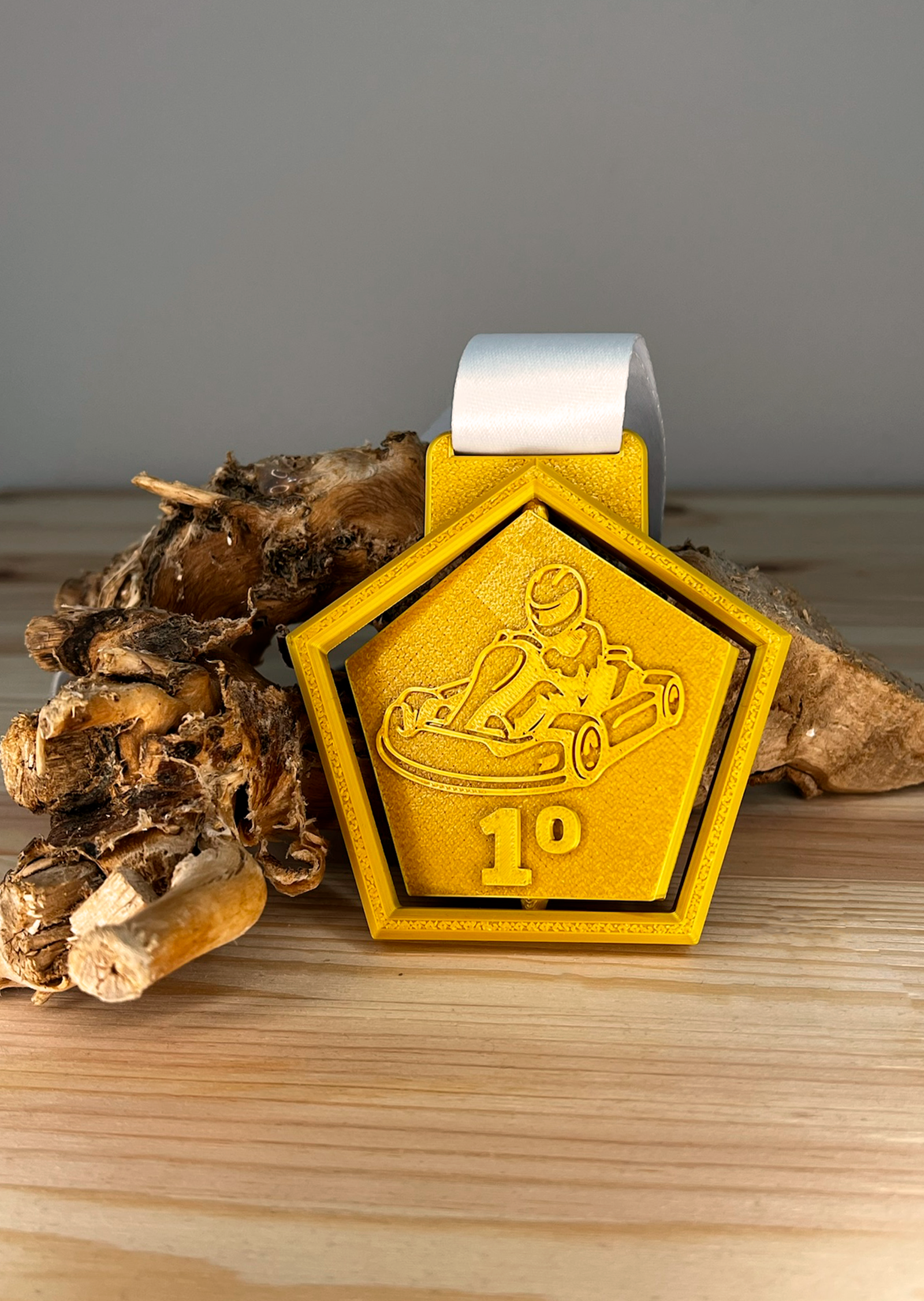 Medallas personalizadas impresas en 3D, diseñadas para competiciones deportivas y eventos. Disponibles en formato circular o pentagonal, con acabados técnicos y posibilidad de combinar hasta cuatro colores. Ideales para pedidos por volumen.